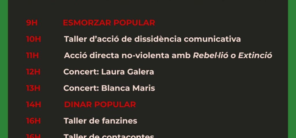 Activitats pel diumenge 5 d’octubre des de les 9 fins a les 24h.