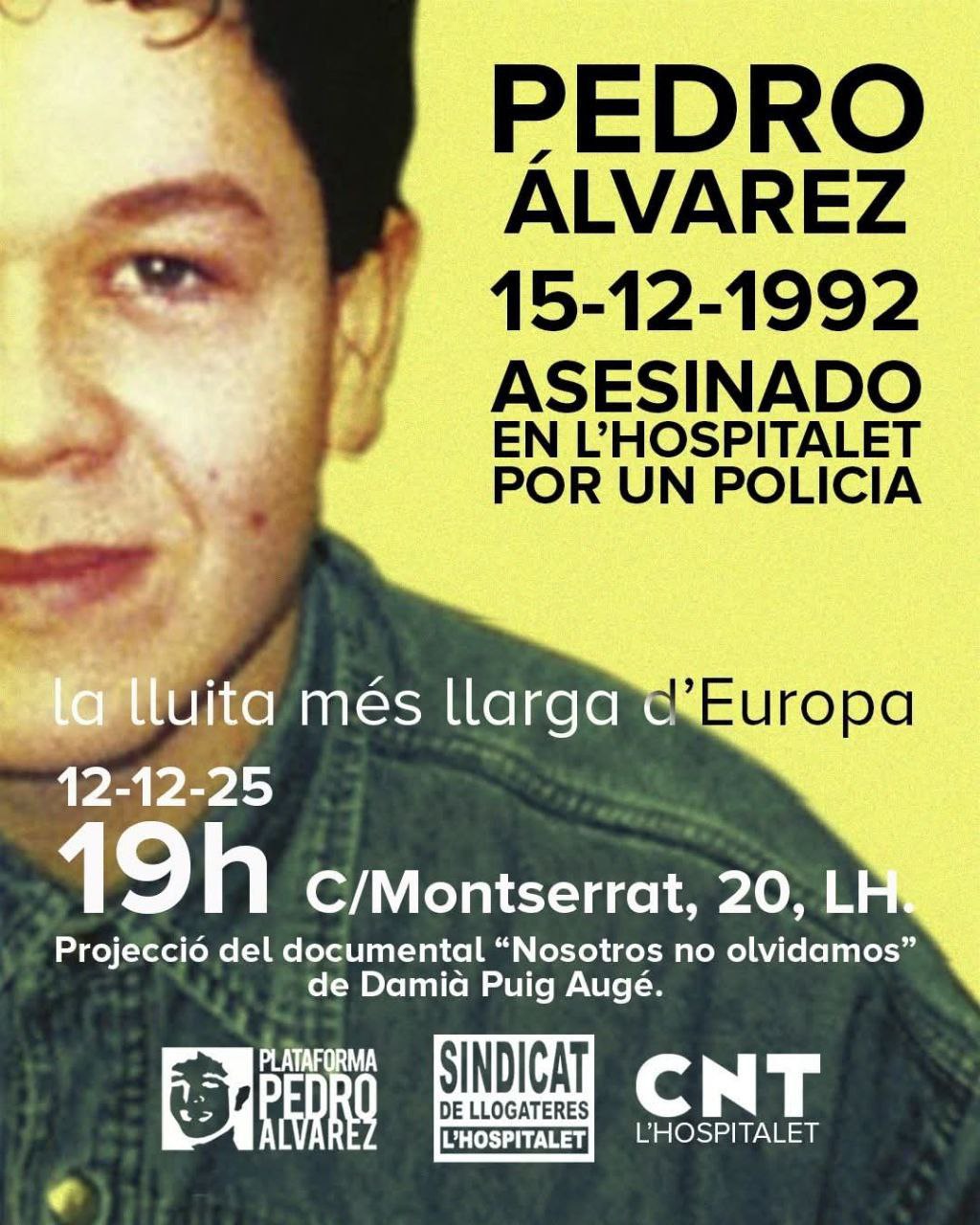 El proper dilluns 15/12 farà 33 anys del brutal assassinat, i la lluita per a #JustíciaPedroAlvarez ha portat moltes persones a manifestar la seva solidaritat amb la família. Aquest és un exemple de fa 32 anys del jovent del barri on vivia.